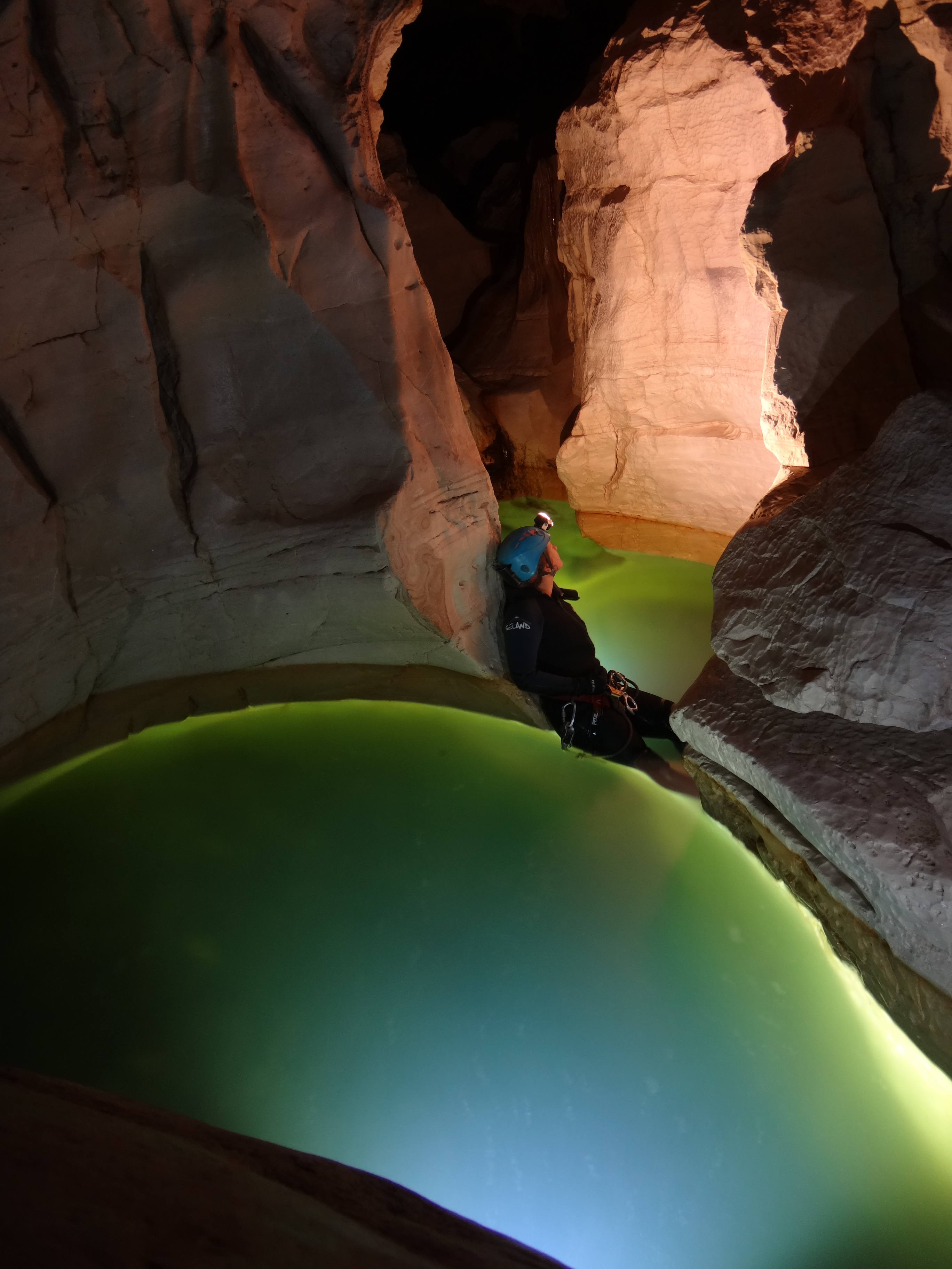 L’entrée de Donini par la via del mondo s’ouvre quelques centaines de mètres en aval en rive droite, son parcours est devenu une classique des canyonistes. Cependant il est dommage de suivre les descriptions des topos qui suivent le fil de l’eau arrivé au collecteur. Nous avons remonté depuis cette confluence jusqu’au fameux siphon amont théoriquement connecté à la perte d’Orbisi. L’ambiance est de suite plus impressionnante quand on connait l’origine des arbres énormes qu’on rencontre tout le long de Donini!! En fouinant un peu on trouve quelques conduites forcées comme celles de sterrus qui rejoint le collecteur plus en aval. En suivant l’aval on reste dans la partie connu toujours aussi splendide.